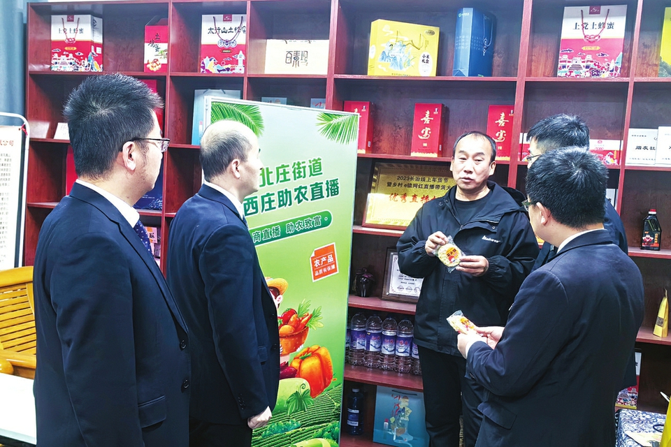 近日,长治漳泽农商银行堠北庄党支部以“让老客户回家”专项活动为抓手,联合堠北庄街道堠西庄村党支部开展了“党建共建同发展 金融赋能促振兴”主题党日活动。通过座谈问需、实地走访、暖心慰问等方式,将党建引领与金融服务深度融合。图为该党支部走进堠西庄村农产品线上直播间,了解直播助农过程中的金融痛点与需求。