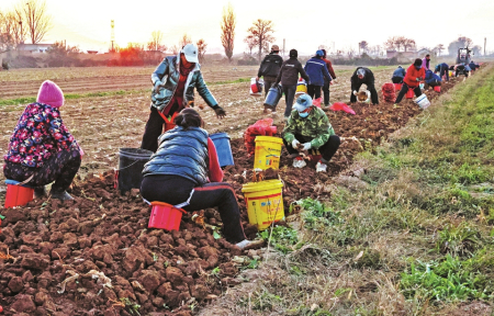 近日,新绛县中药材地黄等进入冬收农忙黄金季,田园处处药香弥漫,药农们抓紧晴好天气抢收抢运,田间地头处处是忙增收火热“丰”景。近年来当地加大中药材科学种植管护营销,中药材已成壮大农民增收一大支柱产业,深受农民青睐。图为新绛县三泉镇西林陀村一家药材“家庭农场”抓紧晴好天气抢收丰收的中药材地黄。