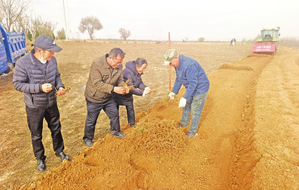 11月24日,山西农业大学小麦研究所科技特派员深入浮山县张庄镇城南村,对当地柴胡种植收获进行现场指导,助力农户科学应对当前生产问题。特派团针对今年柴胡长势,提出机械化收获、人工筛选、及时晾晒、分级售卖等措施,做到收获干净,晾晒不霉,确保农民丰收增收。