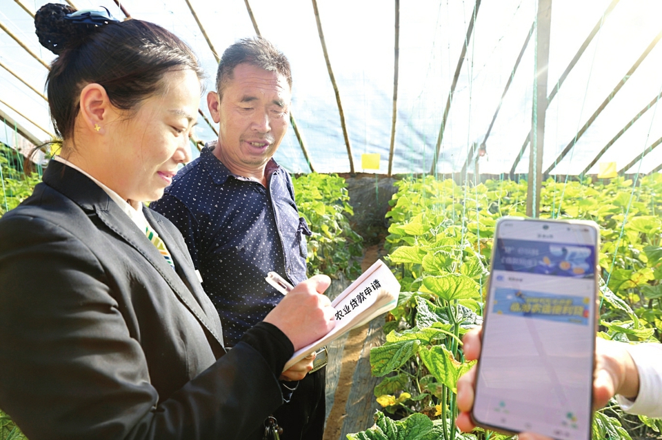 近日,浮山农商银行客户经理走进辖内各蔬菜大棚,了解菜农“农业贷款申请”的相关情况,用手机银行现场放贷,把金融服务送进菜园子。