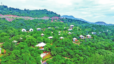 “我们兼顾历史文脉传承与现代业态创新,融合上世纪70年代西水东调的乡村发展记忆,以林为屏、以山为景,投资打造崇洞星光营地民宿,项目以村名‘崇’与周边自然洞口‘洞’命名,既承载乡村奋进历史,又彰显生态康养特色。”据杨立强介绍,营地依山就势散落于山林间,集住宿、景观、娱乐、餐饮于一体,在保留山野原生趣味的同时,配齐现代舒适设施,配套咖啡茶饮、露营聚会等服务,让游客实现“推窗见林海,枕畔听松涛”的沉浸式体验,成为“云端康养”的标志性业态。目前,营地已建成23间特色住房及配套餐厅、接待中心,可满足露营度假、亲子游玩、团建聚会等多元需求,成为区域热门文旅打卡地。“下一步我们将新增草坪婚礼基地,提供一站式婚礼服务,淡季转型承接企业团建、乡村研学等活动,持续深化‘全季运营’理念,最大化释放文旅载体增收效能。”杨立强信心十足。