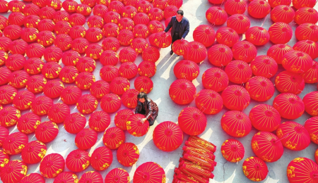 元旦、春节即将来临,稷山县稷峰镇杨赵村的灯笼生产正在热火进行。村民管俊更的家里,工人师傅正在加工制作红灯笼,不同型号、各式各样的灯笼摆满厂房,灯笼上印制的各种精美图案和文字,寓意吉祥、红红火火,在为村民带来增收的同时也拉满节日喜庆氛围。灯笼加工者马长江说:“每天有20多名工人在赶制大红灯笼,正通过线上+线下的营销模式,供应节日市场。”