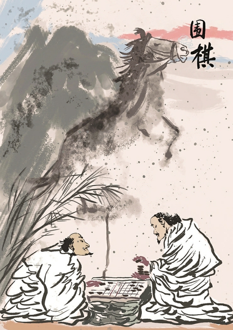围棋乃中华国粹,博大精深,玄妙无穷,黑白之间既互相绞杀,又彼此渗透。战略、战术、攻击、包抄、杀伐、突围、鏖战……千百年来,多少帝王将相、文人雅士、市井布衣乐此不疲,不知演绎出多少传奇佳话、美文诗赋,乃至兵书算法、治国方略。《梨轩曼衍》云:“围棋初非人间之事,始出于巴邛之橘,周穆天之墓;继出于石室,又见于商山,乃仙家养性乐道之具。”这种被世人神乎其神地奉为天外之事的说法,无疑基于对围棋的直观与朴素理解。因此这常人眼里飘逸洒脱的玩法,在历史的演绎中就自觉不自觉地衍生了几抹仙风道骨的苔藓,多了几分烂漫与想象……