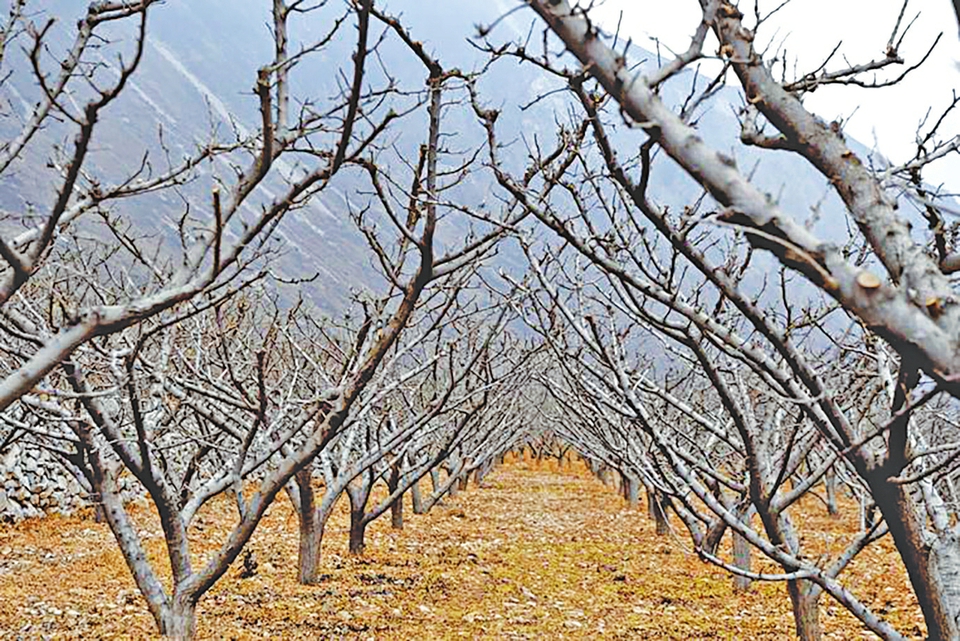 3、设施检修。检修、加固果园支架、防雹网及防霜等设施。及时收拢防雹网,减少风雪损坏。
