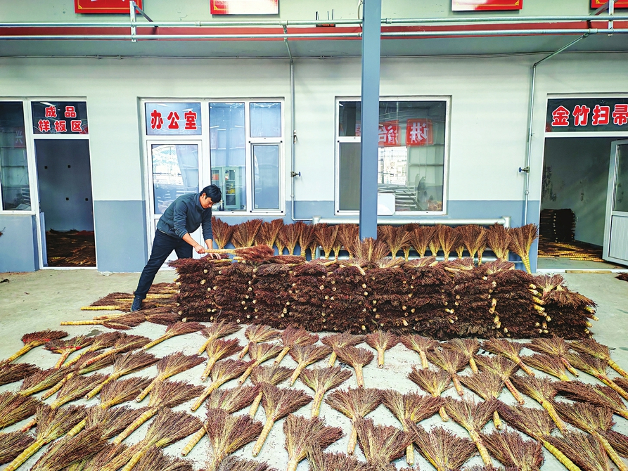 “小宋曲村有制作笤帚的传统,去年,我们探索出‘车间+庭院’双轨产业模式,不仅让老百姓有了收入,还为村集体经济发展注入了活力。”郝黎明指着车间一摞摞扎制好的笤帚说,以前小宋曲村的笤帚制作多是家庭作坊式经营,分散生产导致产品质量参差不齐,销路难以稳定,村民增收困难。2025年,村党支部领办专业合作社,推行“农户居家加工、村集体统一质检回收”的庭院模式,同时打造标准化生产车间开展半机械批量生产,打通了“生产—质检—销售”的标准化产销链条。