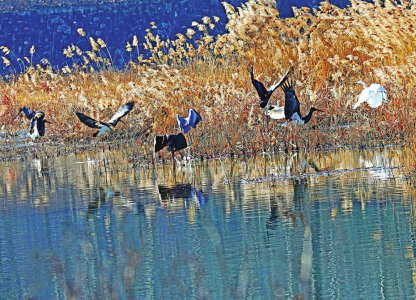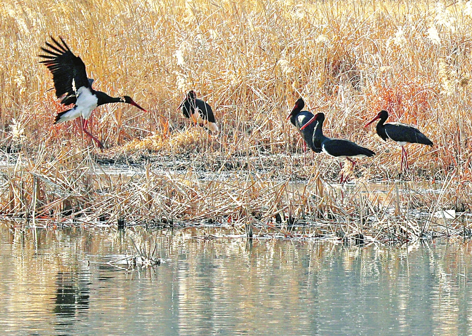 • 在垣曲县亳清河长直段,一群群黑鹳、白鹭、苍鹭在河道两边觅食、嬉戏。鲁国林摄