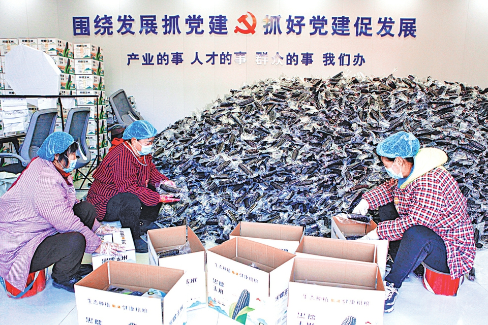 近年来,襄汾县邓庄镇涧沟村坚持党建引领,采取“村集体+合作社+电商平台”的经营模式,大力发展农业特色种植产业。2025年,全村种植的300余亩特色玉米获得丰收,年产黑糯玉米100余万穗,实现产值200余万元,为村集体增收50余万元。图为1月11日,在位于该村的襄汾县桃花沟农业科技有限公司内,员工们正在对黑糯玉米进行分拣、封装、装箱等。