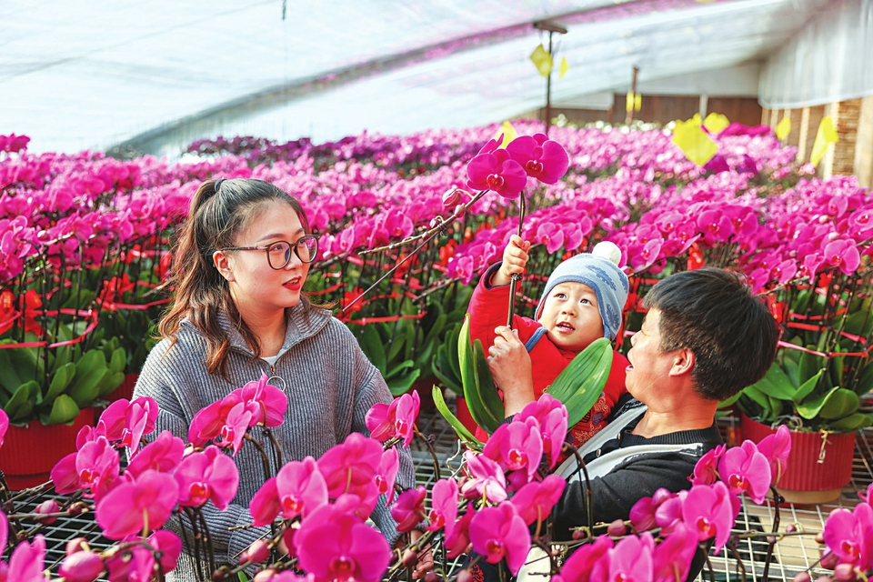 1月18日,在太原市晋源区世纪青花卉基地,市民正在选购蝴蝶兰。近年来,晋源区以区位优势为基础,发挥“花乡”优势、区域优势、文化优势,实施“转型跨越”“抑黑促绿”发展战略,聚合现代农业发展要素,深挖花卉产业经济效益,走出了一条可持续发展的现代农业发展之路。