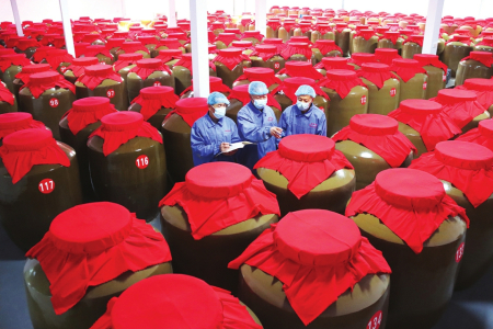 2月2日,沁水县嘉峰镇尉迟村的山西涌泉香醋业股份有限公司储存车间内,工人正加紧检查、登记谷柿醋订单产品。企业开足马力赶制节日订单,保障市场供应。浓浓年味随着传统食品飘向千家万户。