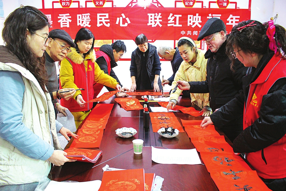 1月27日,闻喜县委老干部局和北城社区精心组织书画爱好者走进该县易地搬迁富源小区,开展“写春联、送福字、暖民心”志愿服务活动,为小区居民送上别样的“文化年货”,让浓浓年味在墨香中流淌。