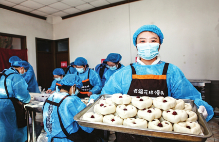 春节临近,年味渐浓。2月8日,在襄汾县邓庄镇温泉村的一家手工花馍坊内,麦香四溢。工人们围坐案前,手中面团上下翻飞,加紧制作手工“枣糕”系列花馍,满足节日市场需求。