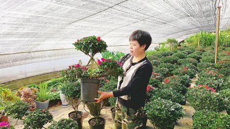 随着春节临近,太原市年宵花市场开始热闹起来。在位于该市晋源区晋源镇古城营村的四季青花卉市场,花农迎来了一年中最忙碌的时刻。大家每天忙着将准备上市的杜娟、蝴蝶兰、仙客来、水仙花等年宵花整饬一新,等待批发商和客户前来选购。图为一位花农在察看即将出手的杜娟。