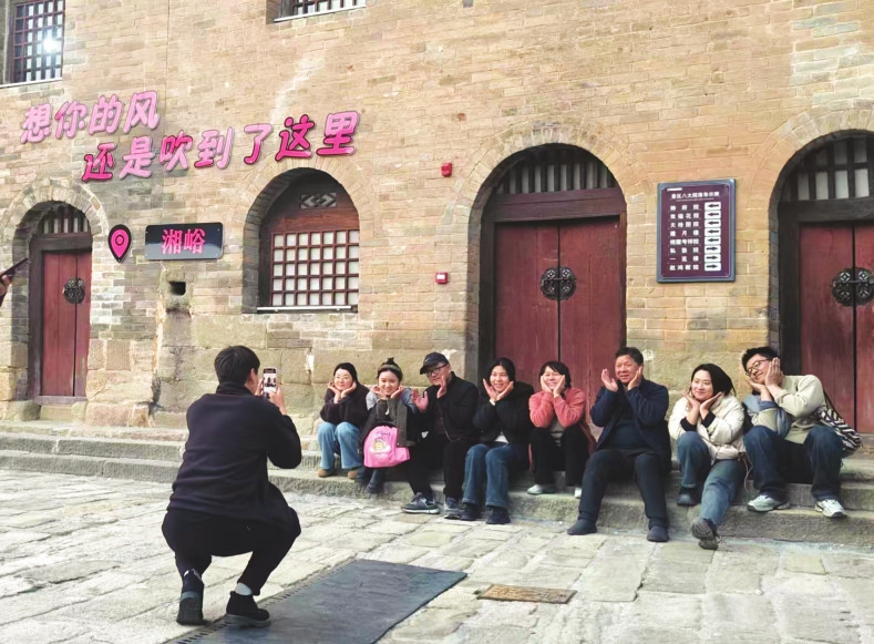 春节期间,古堡褪去平日的静谧,被浓浓的年味包裹。清晨,旌旗招展、锣鼓喧天,盛世鼓舞震天作响,非遗八音会婉转悠扬,演员身着古装列队迎宾,游客仿佛穿越回大明盛世,沉浸式感受古堡的庄重与热闹。沿着青石板路前行,各种精心设计的祝福打卡点不断有游人拍照留念。来自全国各地的游客在湘峪古堡相遇,共庆别样中国年。