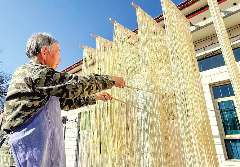 “以前村民都是单打独斗,产量小、销路窄,好东西卖不上好价钱。现在村里统一规划、抱团发展,还帮大家对接电商平台、做直播带货,吸引不少外地经销商上门合作,销路一下子就打开了。”成家庄村党支部副书记王跃青介绍,在村集体的牵头引领下,分散的加工户凝聚成强大的发展合力,成家庄手工挂面的品牌越做越响、口碑越传越广。如今,村里做得好的农户,单靠手工挂面一年收入就能达到7万元,这门传承数代的老手艺,真正变成了村民稳稳当当的“钱袋子”。