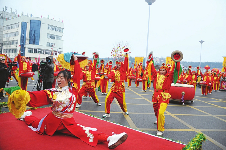 今年元宵节,阳城县28家表演队伍参加了全县社火表演活动,丰富多彩的传统非遗节目精彩上演,为全县群众奉上了一场独具特色的民俗文化盛宴。图为町店镇义城村的“威风锣鼓”表演现场。