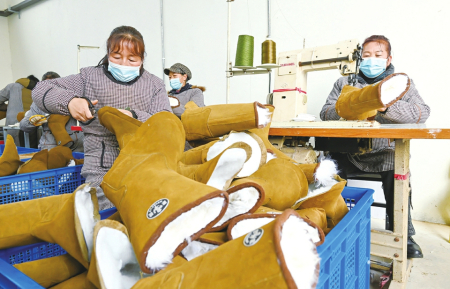 12月9日,在平顺县上五井村“微工厂”的制鞋车间里,村民们正在赶制订单。近年来,该村引进平顺县敏行鞋业有限公司,带动周边300余名村民实现家门口就业。