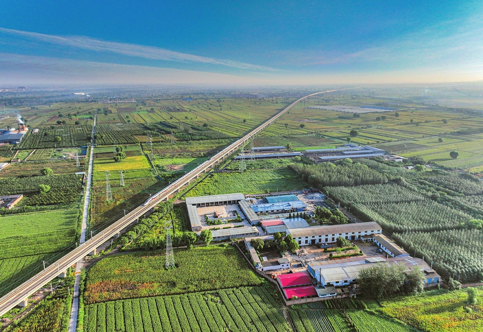 9月6日,一列在大西高铁上飞驰的列车穿过平遥县境内的广袤田野,与沿途的农作物、美丽村庄、乡村道路等相互映衬,勾勒出一幅和谐共生的秋日画卷。
