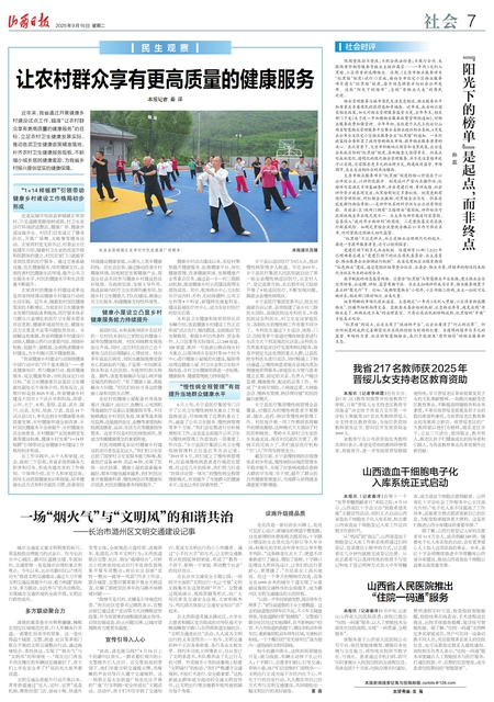 左家湾村的健康乡村建设成果也是我省持续推动健康乡村建设行动的生动实践。近年来,随着农村居民健康需求的不断增长,当前农村卫生健康事业发展仍面临诸多挑战:医疗服务体系与群众日益增长的医疗卫生服务需求存在差距,健康环境亟待优化、健康生活方式普及不足等问题依然存在。为破解这些难题,我省将健康乡村建设行动纳入健康山西行动重要内容,围绕补短板、促提升、强根基,全面推进健康乡村建设,为乡村振兴筑牢健康根基。