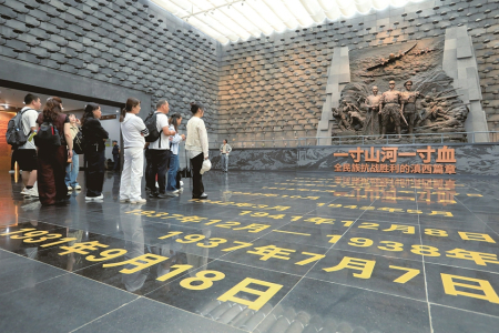 图①:9月18日,在沈阳“九·一八”历史博物馆残历碑广场拍摄的“勿忘九一八”撞钟鸣警仪式现场。 图②:9月18日,人们在侵华日军南京大屠杀遇难同胞纪念馆参观。 图③、图④:9月18日,在哈尔滨市的侵华日军第七三一部队罪证陈列馆外,人们在防空警报鸣响时肃立默哀。 图⑤:9月18日,游客在云南省腾冲市滇西抗战纪念馆参观“一寸山河一寸血全民族抗战胜利的滇西篇章”主题展览。