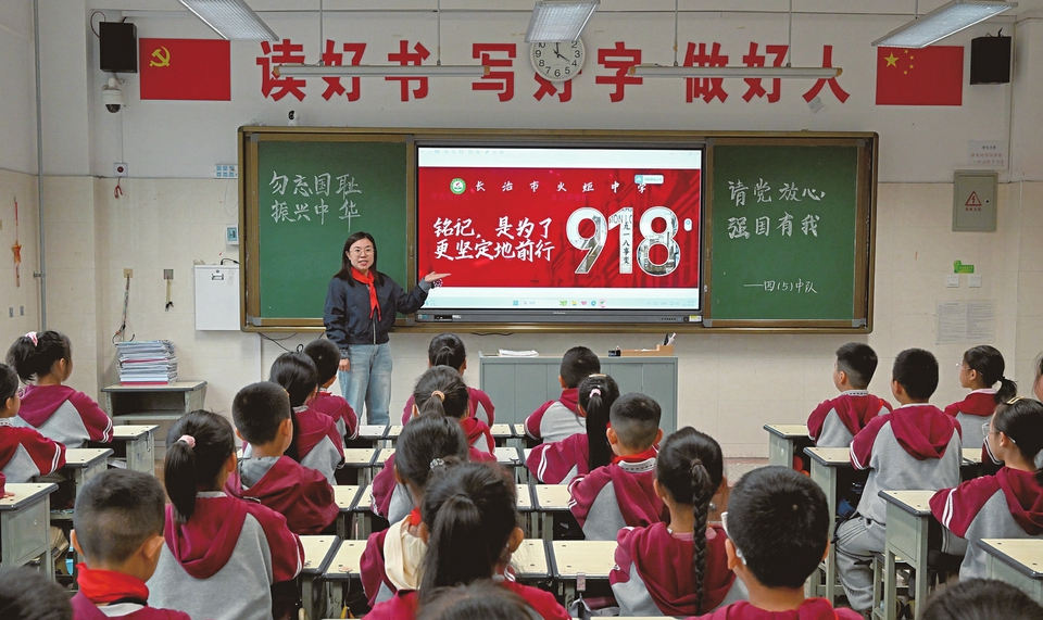 9月18日,长治市火炬中学开展以“铭记九一八”为主题的爱国主义教育活动,通过升旗仪式、主题班会和诵读抗战家书等形式,让红色基因、爱国情感融入学生心灵。