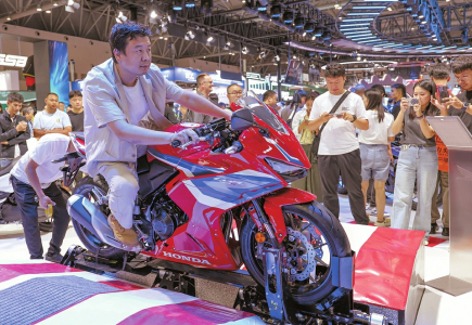 9月19日,观众在摩博会现场体验摩托车模拟驾驶。第二十三届中国国际摩托车博览会于9月19日至22日在重庆举行,来自全球的900多家企业参展,规模创历史新高。