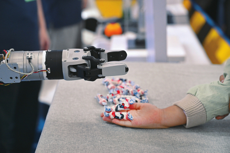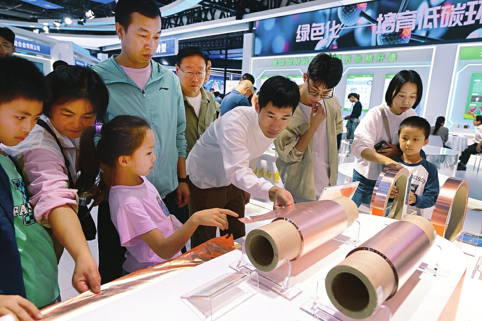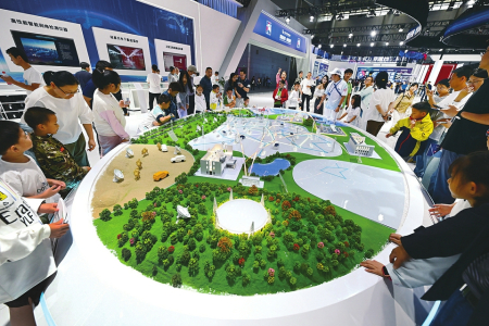 9月20日,2025世界制造业大会在安徽省合肥市开幕。大会为期四天,以“智造世界·创造美好”为主题,举办开幕式暨主旨演讲、重大项目对接、“十四五”制造业发展成就展示、重点产业链供应链供需对接、大会发布等活动。 图①:大会上的未来网络沙盘。 图②:小朋友在大会现场观看一款地铁模型。 图③:观众在大会上参观铜箔产品。 图④:在大会现场,机器人抓取糖果放到小朋友手上。 图⑤:观众在大会现场参观一款飞行汽车。