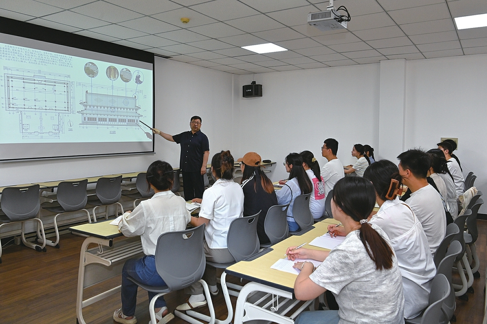 王崇恩的宣讲阵地远不止于此。三尺讲台、公益讲座、乡村古建保护现场都是他的“讲堂”。今年7月,他参与了中法专家团队对晋祠及周边传统村落的联合考察与研讨,中外专家共同探讨水系治理、文物保护技术和生态旅游发展等议题,为探索晋祠文化景观的协同保护提供了新思路。