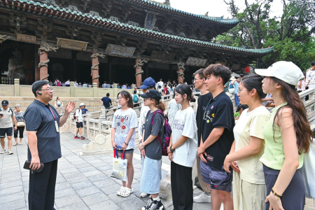 “王老师常说,我们是文保的‘扩音器’。”一名学生志愿者说。王崇恩精心培养这支年轻的宣讲队伍,带领他们不仅在特殊节日集中发声,更在课余时间长期坚持。在太原纯阳宫、在晋祠,学生们走遍各个角落,掸去岁月的浮尘,也用自己的专业知识,为往来游客讲述一木一石背后的历史故事,将志愿服务与知识的“话筒”紧紧结合在一起。