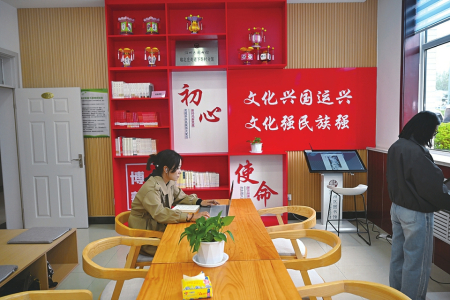 长治市通过践行社会主义核心价值观、传承传统美德,培育群众崇德向善、见贤思齐的文明风尚,强化基层治理,推动学用“千万工程”经验走深走实。作为典型示范,潞州区堠北庄街道下秦村推动乡村治理“社区化”,村民文化生活丰富,村庄和谐稳定,助力乡村振兴不断取得新成效。图为潞州区图书馆下秦村分馆,村民在阅读书籍。