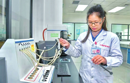 在安仑化工炭黑研发中心,各种类型的实验室整整占了两层楼。在水质实验室内,技术员将来自不同生产线和厂区污水处理厂的尾水水样依次放入试管,加入反应试剂,等待结果。“水质检测是环保检测的重要一环,目前,厂区废水经污水处理厂处理后全部回用于生产系统,指标优于行业前水平。”安仑化工相关负责人薛亚磊说,“除此之外,针对炭黑产品的性能,我们还建立多个实验室,力求将产品做得更专业。”