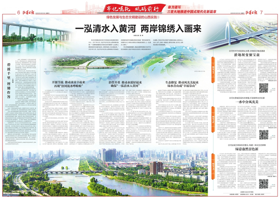 让汾河“水量丰起来、水质好起来、风光美起来”的嘱托与期待,为汾河的命运带来了历史性转机。“一泓清水入黄河”正是这一宏伟蓝图最凝练、最动人的表达,是三晋大地生态修复写入时代答卷的庄严承诺。
