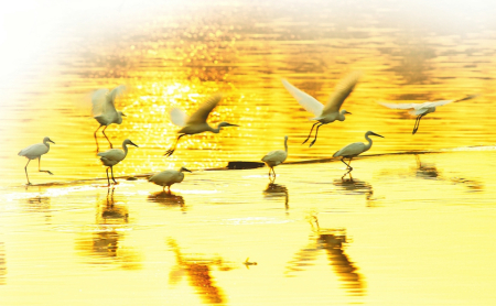 • 洪洞汾河湿地暮色下飞鸟蹁跹。段建武摄