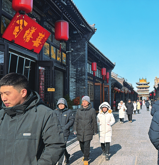 12月14日,游客在平遥古城南大街游玩。随着“怡然见晋中”入选全国“旅游集团赋能目的地创新发展范例”,前来平遥的游客明显增多。