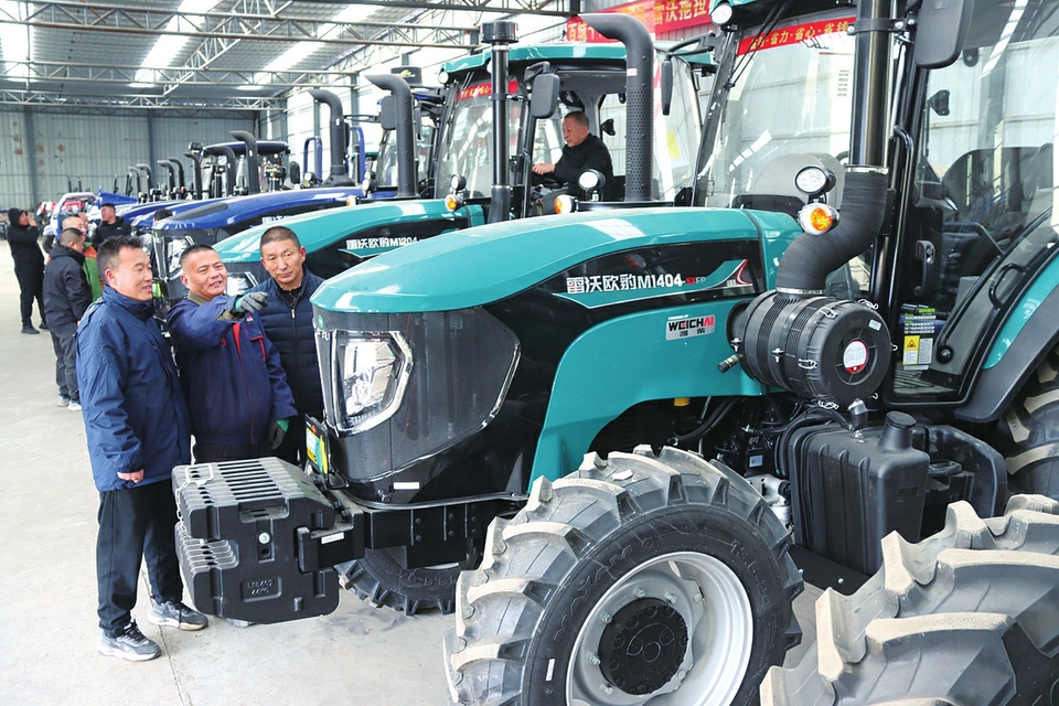 1月4日,农民在阳城县宏昌农机有限公司农机销售市场选购农机,及早为春耕生产做准备,全县各农机市场迎来销售热潮。