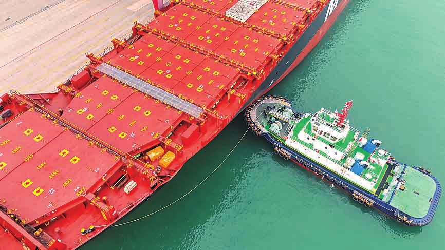 1月4日,澳洲直航新航线首班船舶——“地中海杰西尼亚”轮靠泊山东港口青岛港(无人机照片)。当日,澳洲直航新航线首班船舶靠泊山东港口青岛港,标志着该港2026年首条外贸新航线正式开通。