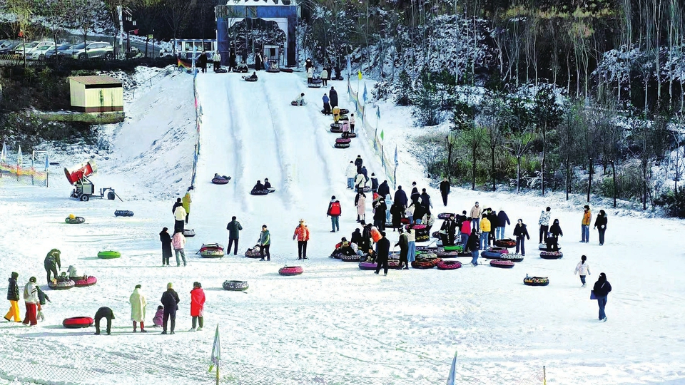 1月5日,晋中市太谷区田园东谷温泉康养小镇首届冰雪节启动,游客们在园内尽情游玩,畅享冰雪世界的乐趣。