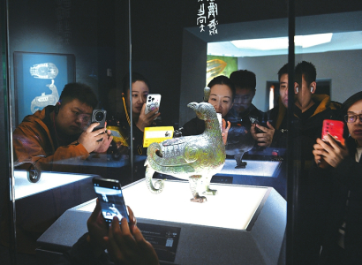 1月2日,山西博物院内,游客在聚精会神赏文物、听讲解,了解历史知识,感受三晋文明魅力。