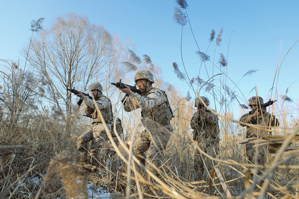 一月四日,武警山西总队忻州支队官兵开展山林地捕歼战斗演练。新年伊始,新年度军事训练拉开帷幕。