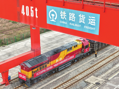 1月7日,一列满载108台“重庆造”新能源汽车的铁海联运专列,从重庆果园港鱼嘴站发出,预计在48小时后抵达广州南沙港,随后换装海轮运往中东市场。此趟专列是2026年首趟铁海联运“重庆造”新能源汽车专列。