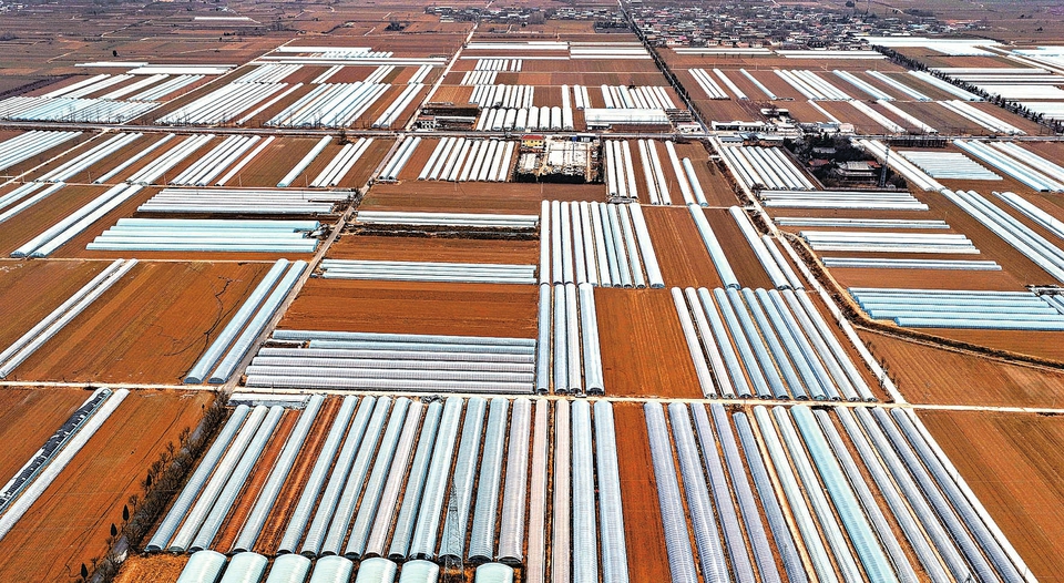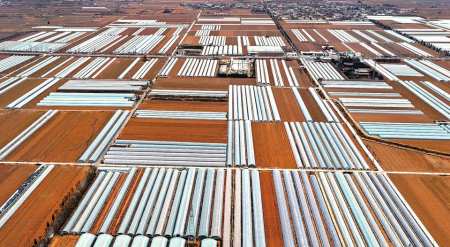 1月6日,永济市虞乡镇洗马村特色农业基地,2100余亩西瓜暖棚与道路、农田及村落交相辉映。近年来,洗马村积极推广温室大棚种植技术,打造“永济洗马西瓜”区域品牌,持续推动西瓜产业提质增效。