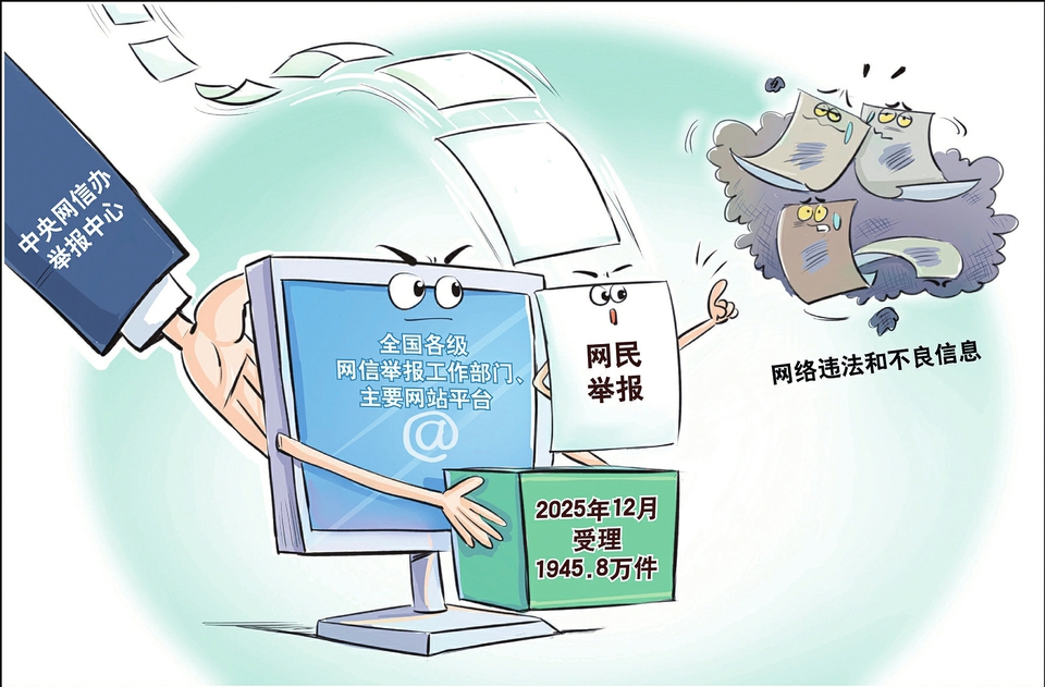 去年12月全国受理网络违法和不良信息举报1945.8万件