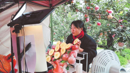 直播间内,主播热情推介不停歇;分拣区里,经过智能化分拣的苹果被分类装箱;物流货车旁,打包好的货品即将发往全国……仲冬时节,郇阳大地丰收余热未消,果品销售持续升温。
