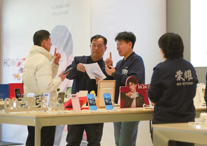 2025年12月6日,省聋人协会携手荣耀终端股份有限公司在太原市钟楼街荣耀门店举办“听障一日店员体验官”活动,邀请听障朋友作为店员向顾客介绍手机产品和无障碍功能。