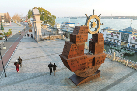 近年来,湖北省荆州市持续推动历史文化街区修复改造,以绿色发展为主导,依托沙市码头的悠久历史和工业文化,打造集文化展示、滨江观光、双创空间等多种业态为一体的沙市洋码头文创园。昔日码头、厂房变身城市新地标,成为人们休闲娱乐的好去处。图为1月7日拍摄的洋码头文创园。