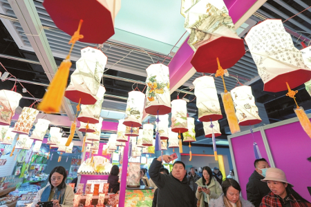 1月8日,2026北京图书订货会开幕。本届订货会以“谋新篇 开新局 启新程,续写出版发行业新辉煌”为主题,共设立十余个专题展区,并设立跨界文化产品展区。展览总面积5万平方米,展出图书40万余种,参展商700余家,展台数量2700余个。图为人们在跨界文化产品展区参观。