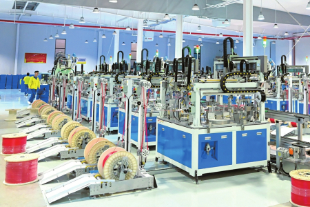 1月7日,山西壶化集团股份有限公司生产车间,自动化智能化生产设备正全力运行。近年来,该公司依托民爆核心产业,拓展产业链上下游,将雷管上游原材料脚线、芯片制造引入壶关并落地,实现原材料自给自足,带动产业链发展。