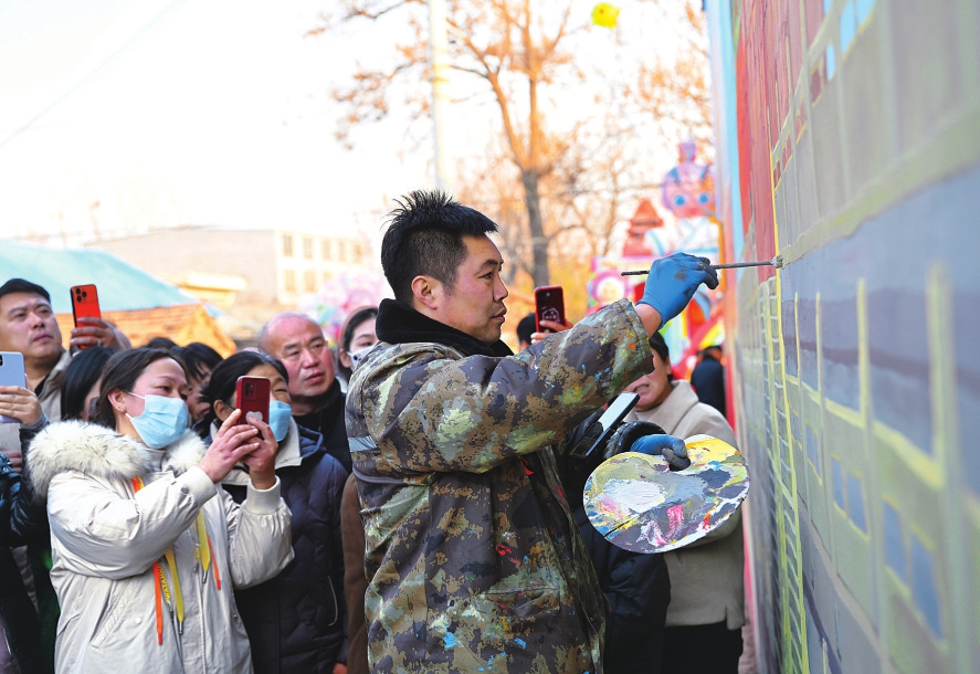如今墙绘成了村子的一张名片,整个元旦假期,吴营村都热闹非凡。街道上人头攒动,街边排满小吃摊位,给村子带来了火热的人气。