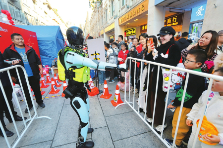 在福建省厦门市公安局举办的警营开放活动现场,市民观看警用机器人演示。