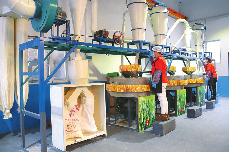 1月9日,阳城县屹珅粮油有限公司生产基地内,工人正在加紧生产,全力保障春节市场供应。近年来,该基地大力发展石磨面粉加工和泡麦面馍生产产业,带动农民增收。