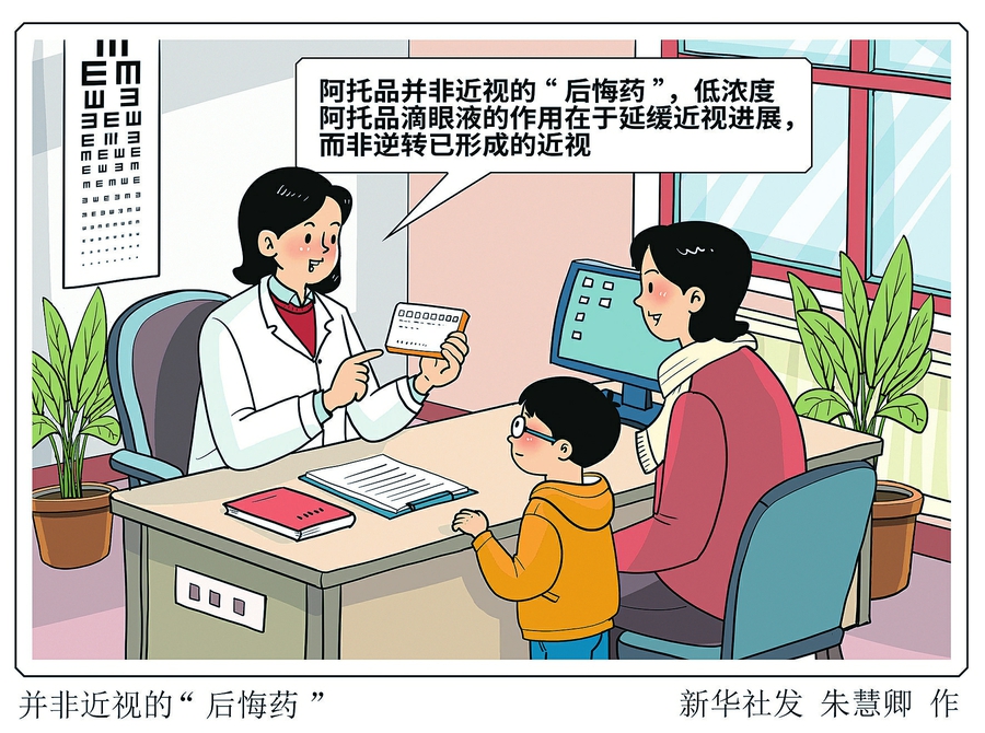 需要明确的是,阿托品并非近视的“后悔药”。“还有一些家长会误以为用了阿托品视力就能恢复回来,无需配镜”。付晶说,低浓度阿托品滴眼液的作用在于延缓近视进展,而非逆转已形成的近视。儿童一旦确诊近视,仍需佩戴度数合适的足矫眼镜。